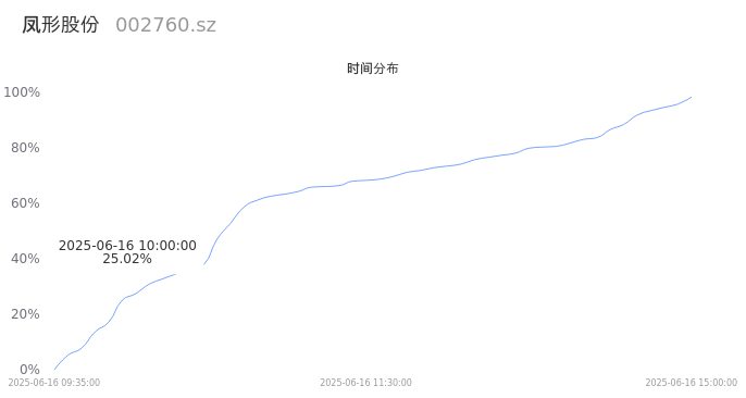 002760凤形股份2025年06月16日成交3.00万手,成交金额5579.03万,相较昨日缩量7037手,换手率2.77%,成交清淡。