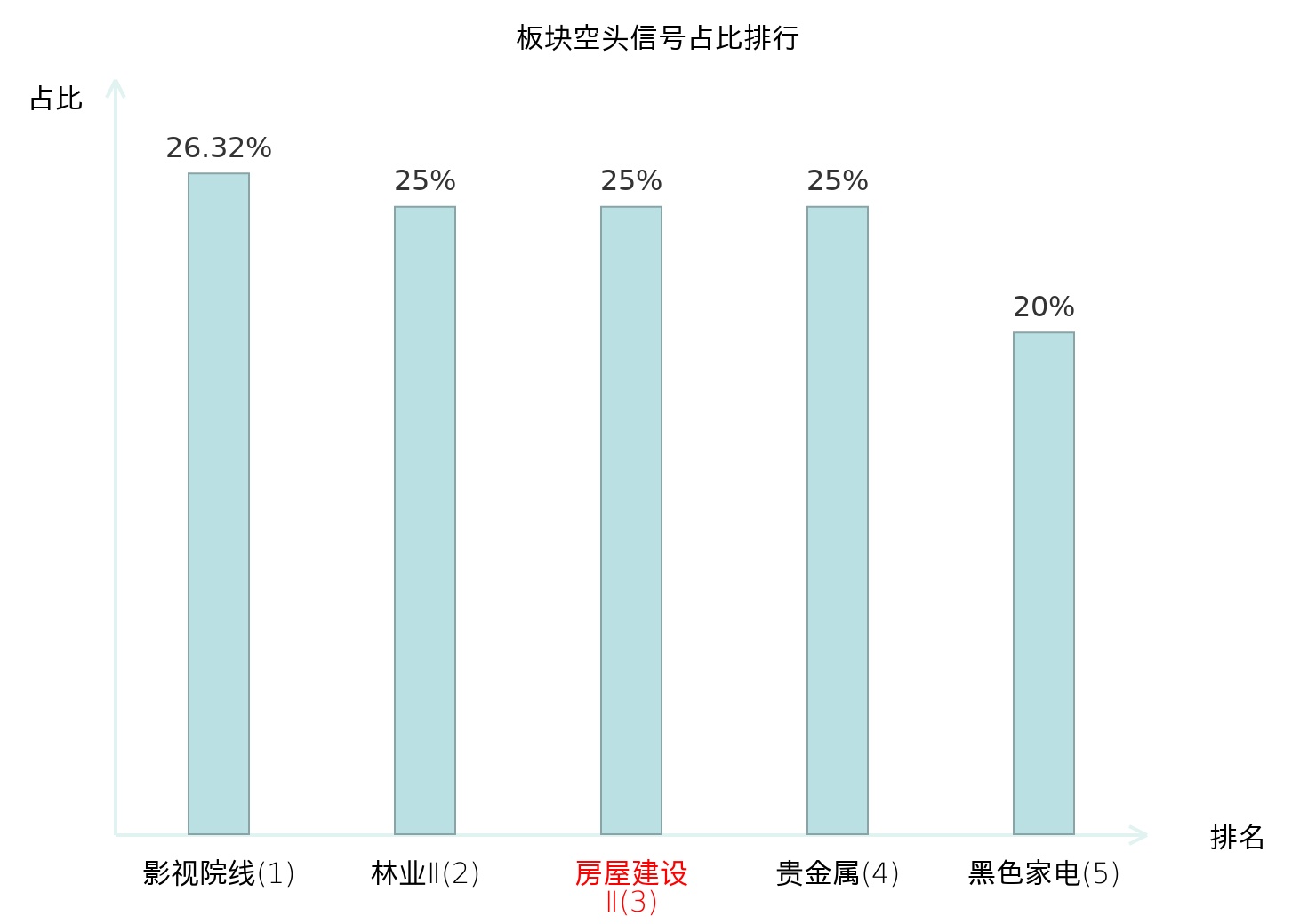 全市场所有行业板块中主力空头信号占比排名中,影视院线板块位居第一。普钢板块名次提升最快,较昨日上升115位。