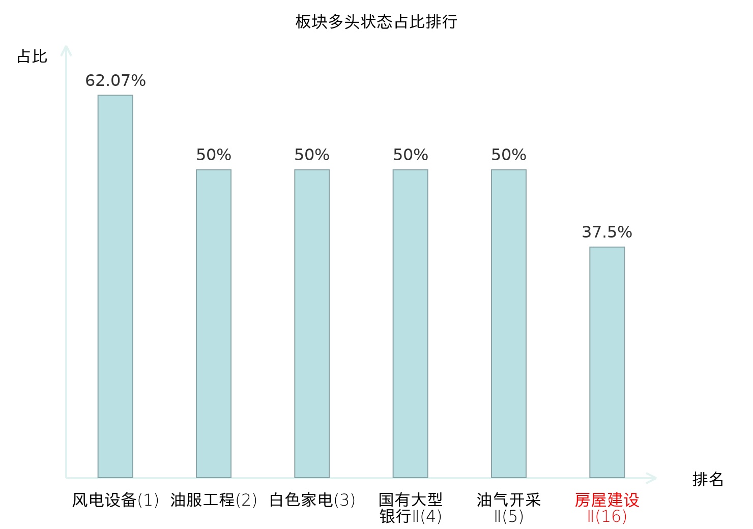 全市场所有行业板块中主力多头状态占比排名中,风电设备板块位居第一。动物保健Ⅱ板块名次提升最快,较昨日上升64位。