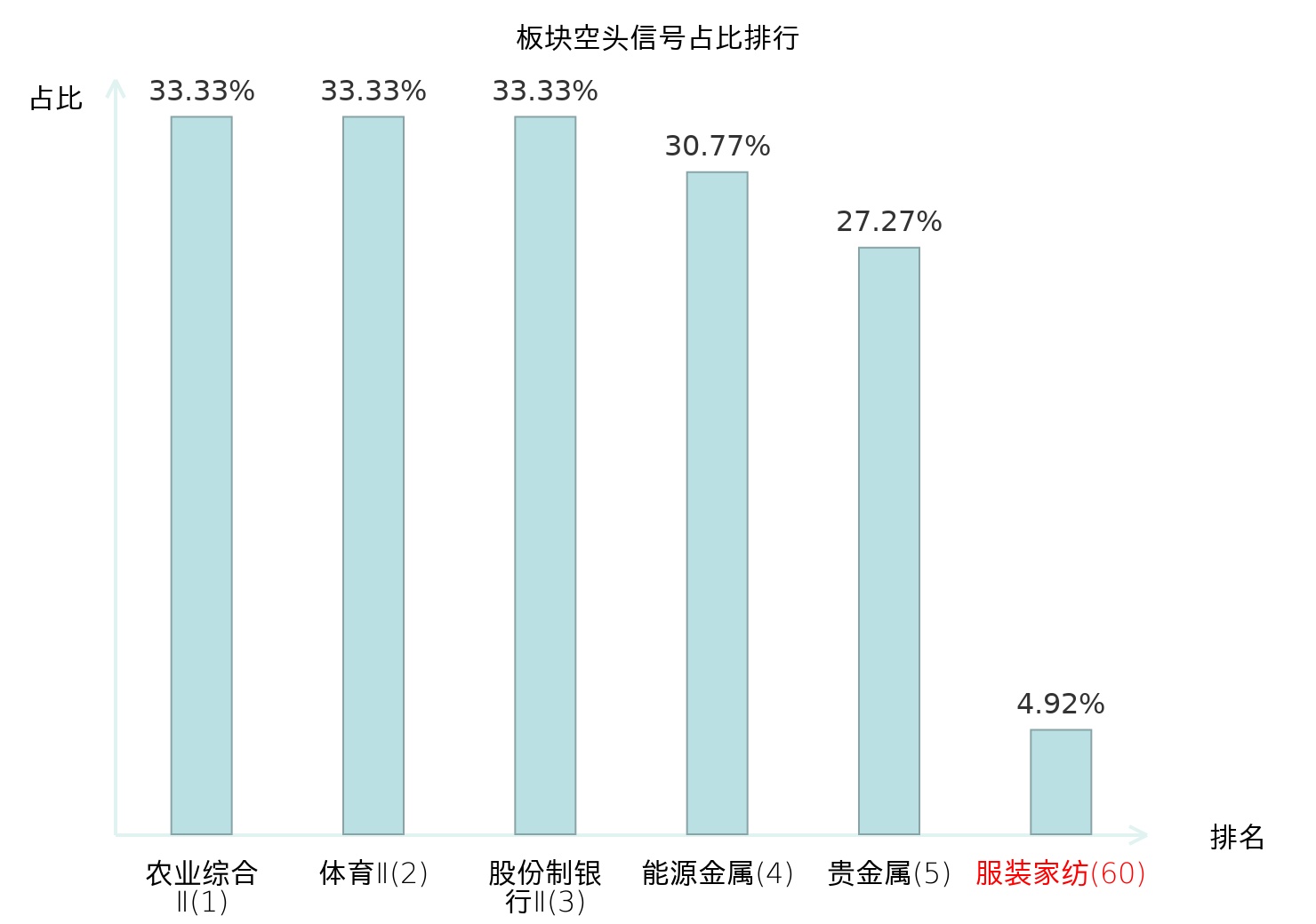 全市场所有行业板块中主力空头信号占比排名中,农业综合Ⅱ板块位居第一。出版板块名次提升最快,较昨日上升115位。