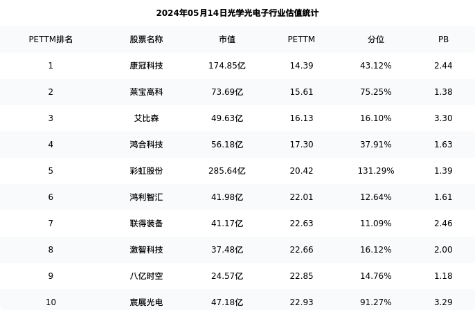 蓝黛科技最新报告期数据为一季度,下表汇总了光学光电子行业内市值靠前的公司一季度主要经营数据
