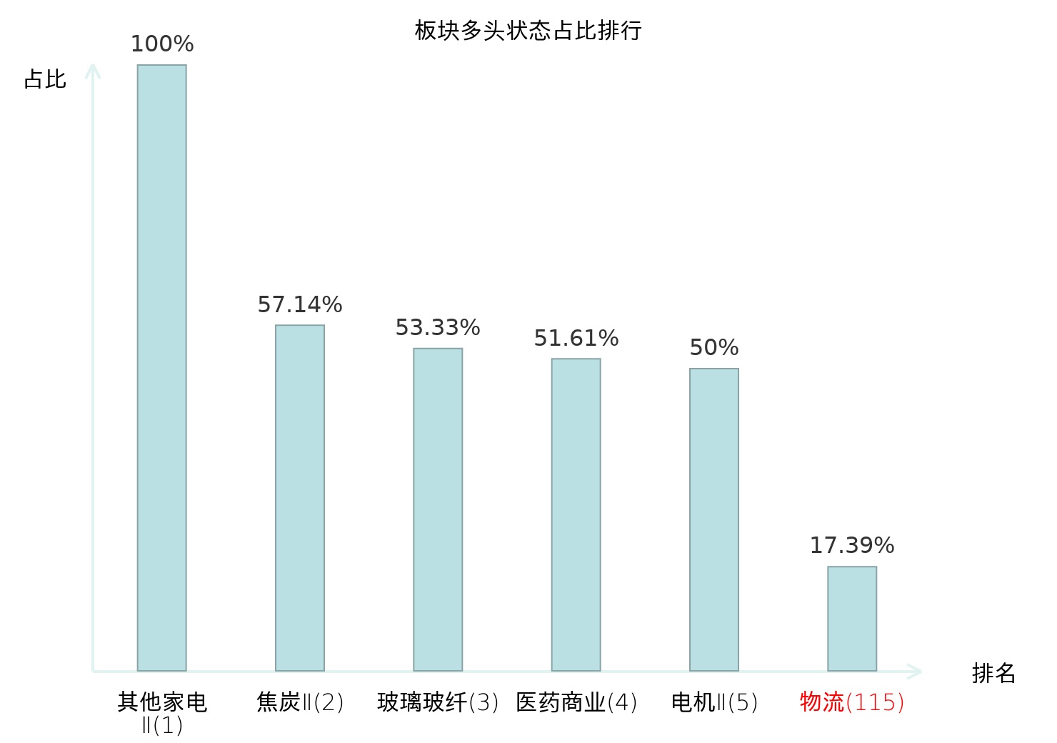 全市场所有行业板块中主力多头状态占比排名中,其他家电Ⅱ板块位居第一。白色家电板块名次提升最快,较昨日上升67位。