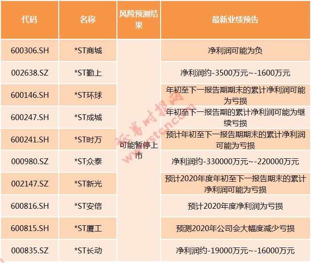 有人欢喜有人愁。*ST商城、*ST勤上、*ST环球等10股因已经连续亏损两年且今年年报预计续亏,面临着被暂停上市的风险。