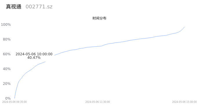 根据成交分布分析,该股票当天缩量成交,成交活跃。时间上看,早盘前半小时成交量占据当天总成交量的40.47%;价格上看,成交呈现中间峰。成交分布分析主要研究股票成交的分布特性,不具有预测功能,请知悉。