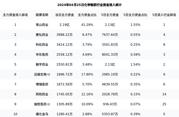 从主力资金流向来看,化学制药行业今日主力资金流入54.92亿元,在所有申万二级行业中排名:37/131。