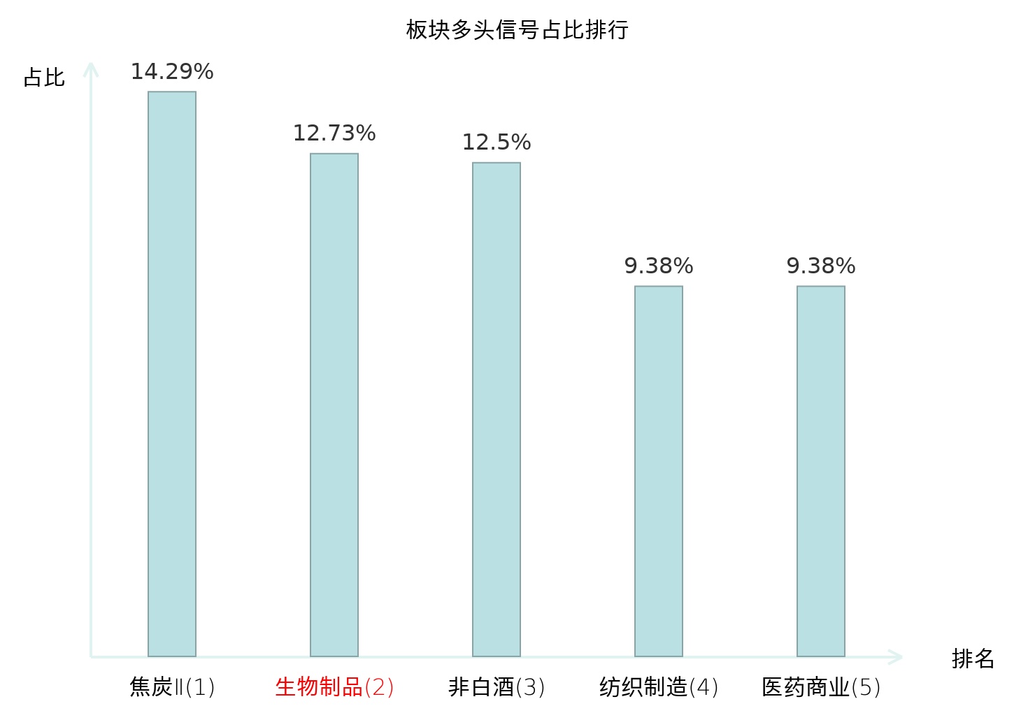 全市场所有行业板块中主力多头信号占比排名中,焦炭Ⅱ板块位居第一。焦炭Ⅱ板块名次提升最快,较昨日上升120位。