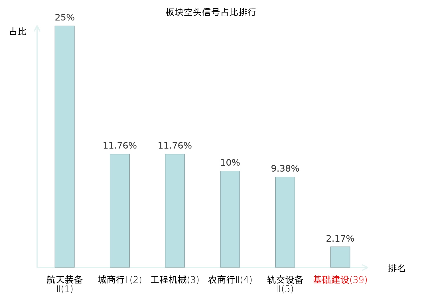 全市场所有行业板块中主力空头信号占比排名中,航天装备Ⅱ板块位居第一。出版板块名次提升最快,较昨日上升106位。