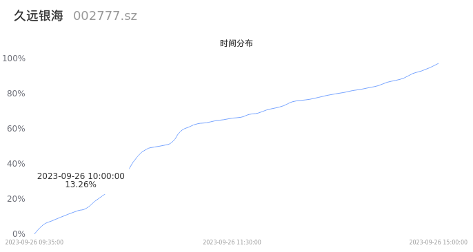 根据成交分布分析,该股票当天放量成交,成交清淡。时间上看,早盘前半小时成交量占据当天总成交量的13.26%;价格上看,成交呈现中间峰。成交分布分析主要研究股票成交的分布特性,不具有预测功能,请知悉。