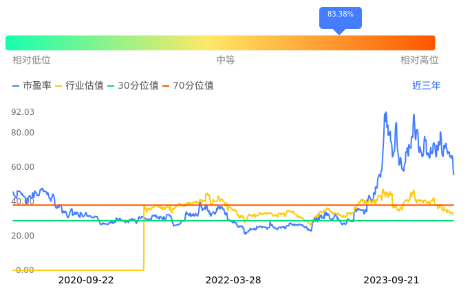 2023年09月21日,久远银海下跌5.36%收于25.59,今日成交金额7.20亿元。下文将从市盈率PETTM、市净率PB、市现率3个角度去分析公司估值情况。