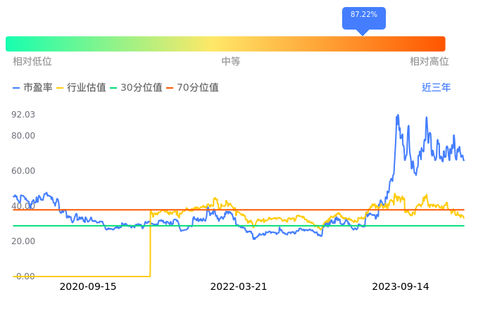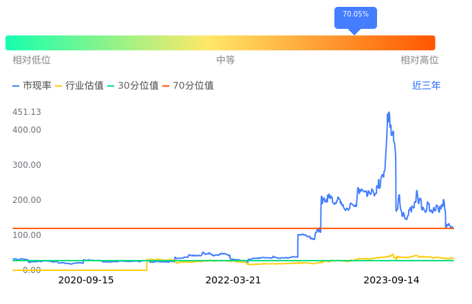 2023年09月14日,久远银海上涨0.49%收于30.61,今日成交金额2.45亿元。下文将从市盈率PETTM、市净率PB、市现率3个角度去分析公司估值情况。