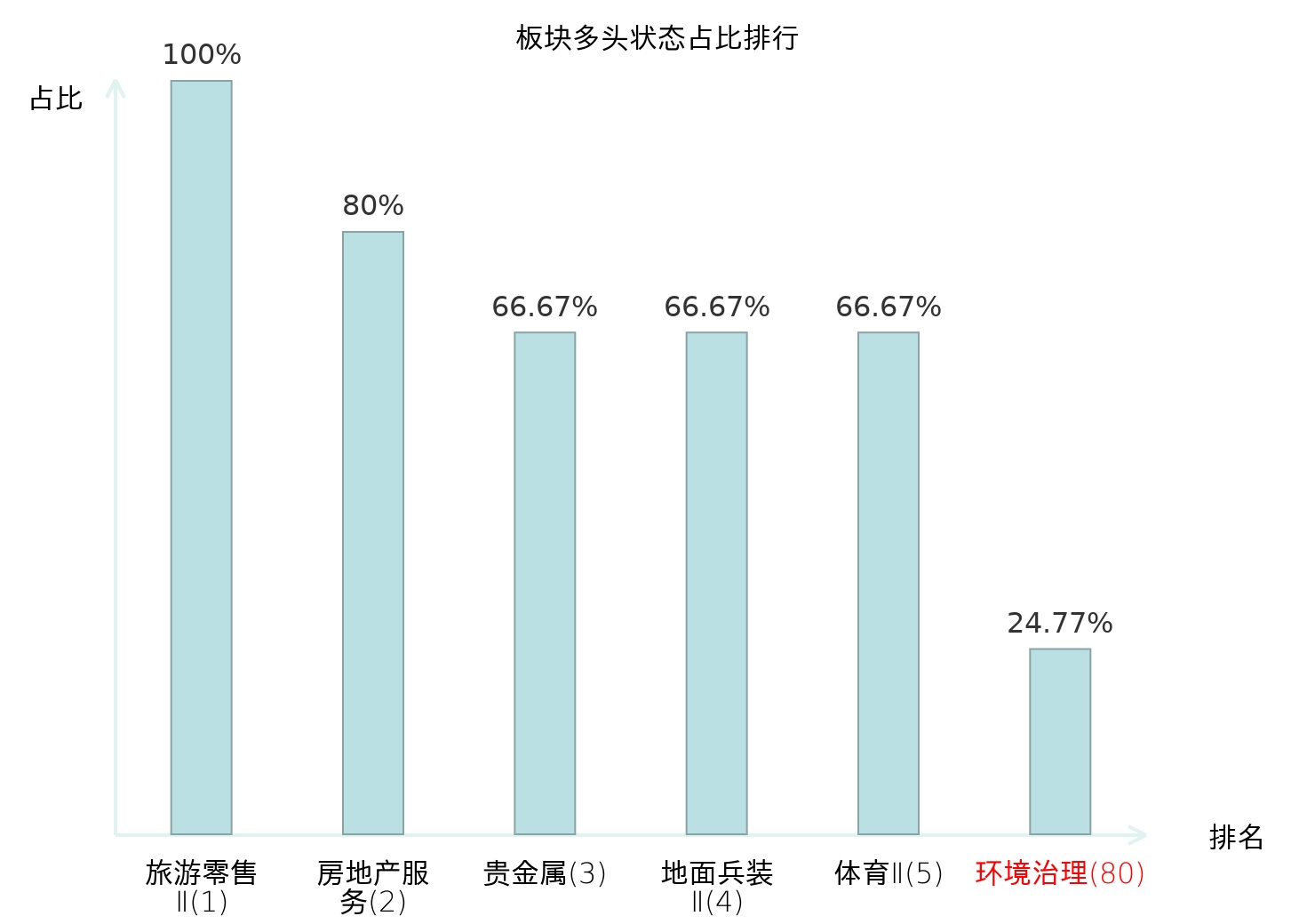 全市场所有行业板块中主力多头状态占比排名中,旅游零售Ⅱ板块位居第一。个护用品板块名次提升最快,较昨日上升70位。