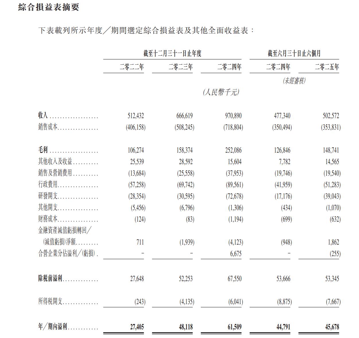 2022年、2023年、2024年、2025年截至六月三十日止六个月,该公司年内╱期内溢利分别约为2740.5万元、4811.8万元、6150.9万元、4567.8万元人民币。