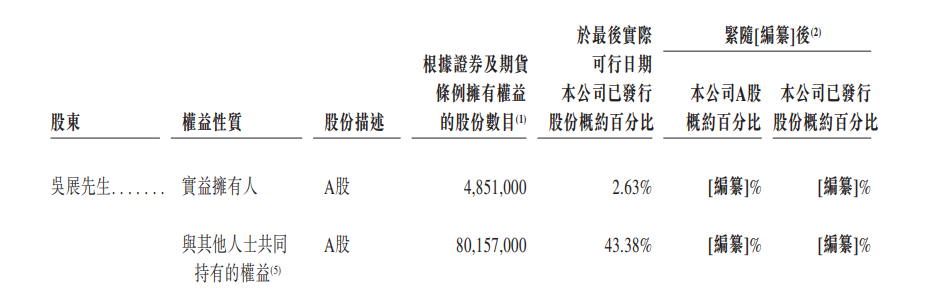 于最后实际可行日期,中坚科技分别由中坚机电集团有限公司、吴先生、赵女士、吴晨璐女士及吴展先生直接持有31.55%、5.52%、3.68%、2.63%及2.63%。中坚机电分别由吴先生、赵女士、吴晨璐女士及吴展先生直接持有44.00%、29.33%、13.33%及13.33%。