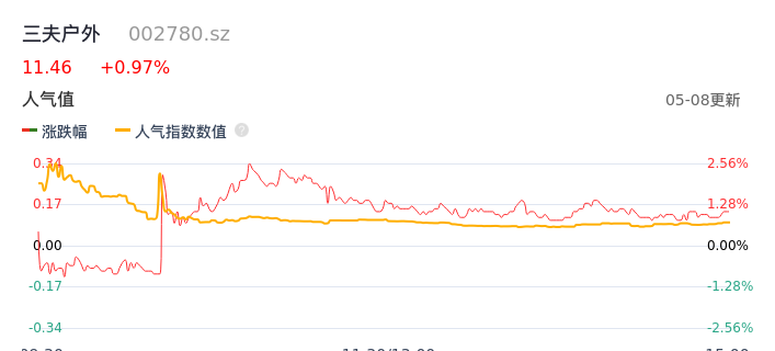05月08日,三夫户外收报11.46,股价涨幅0.97%,成交金额1.02亿元,换手率6.83%。