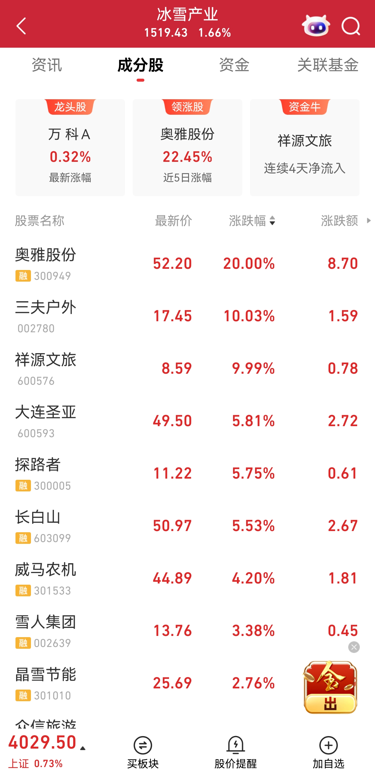 冰雪旅游板块今天持续走强,三夫户外2分钟拉升涨停,大连圣亚、长白山等跟涨。
