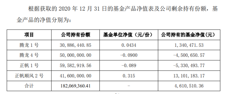 直至公司知悉并确认截至2020年12月31日资产净值,四支私募基金的资产净值已跌至461.05万元,已对公司造成实质亏损,触发临时信息披露义务。