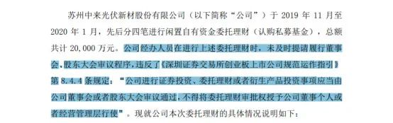 追溯事件的原点,中来股份上述委托理财是“偷偷”进行的。2020年4月27日,公司就使用闲置自有资金委托理财的情况进行了说明并致歉,公众才知晓了这笔投资。