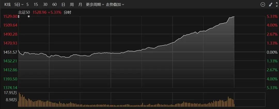 午后A股走高,截至发稿,创业板指涨逾2%,沪指涨0.5%,深证成指涨逾1.5%。北证50指数涨超5%。