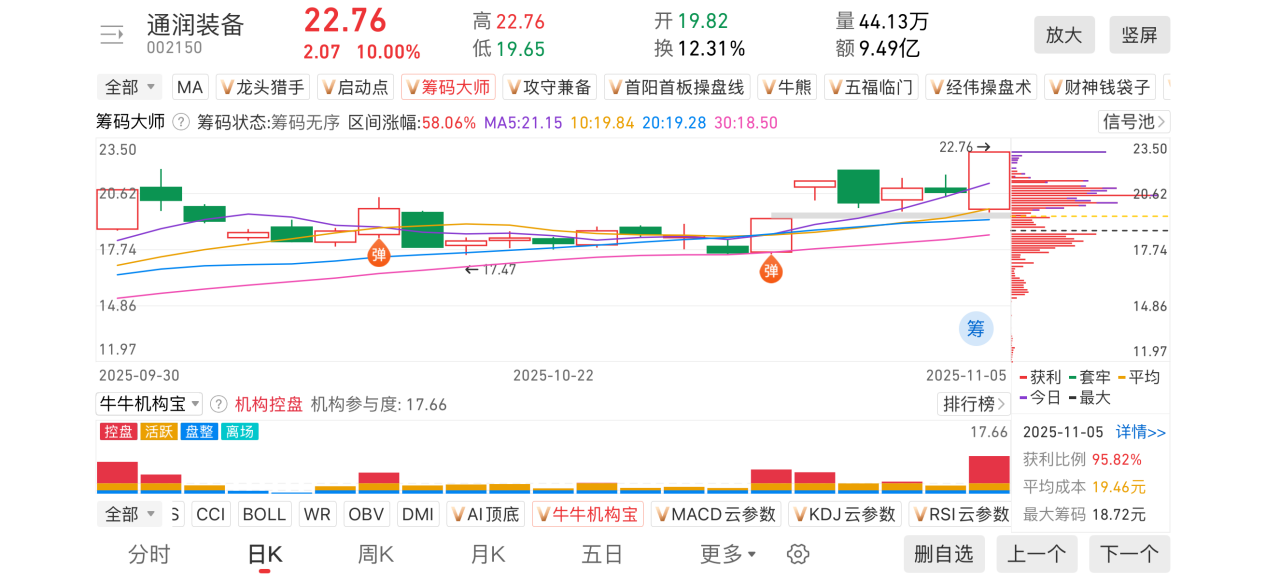 2)20251105-通润装备-【筹码大师】和【牛牛机构宝】-近期出现弹信号且底部量柱由绿转红