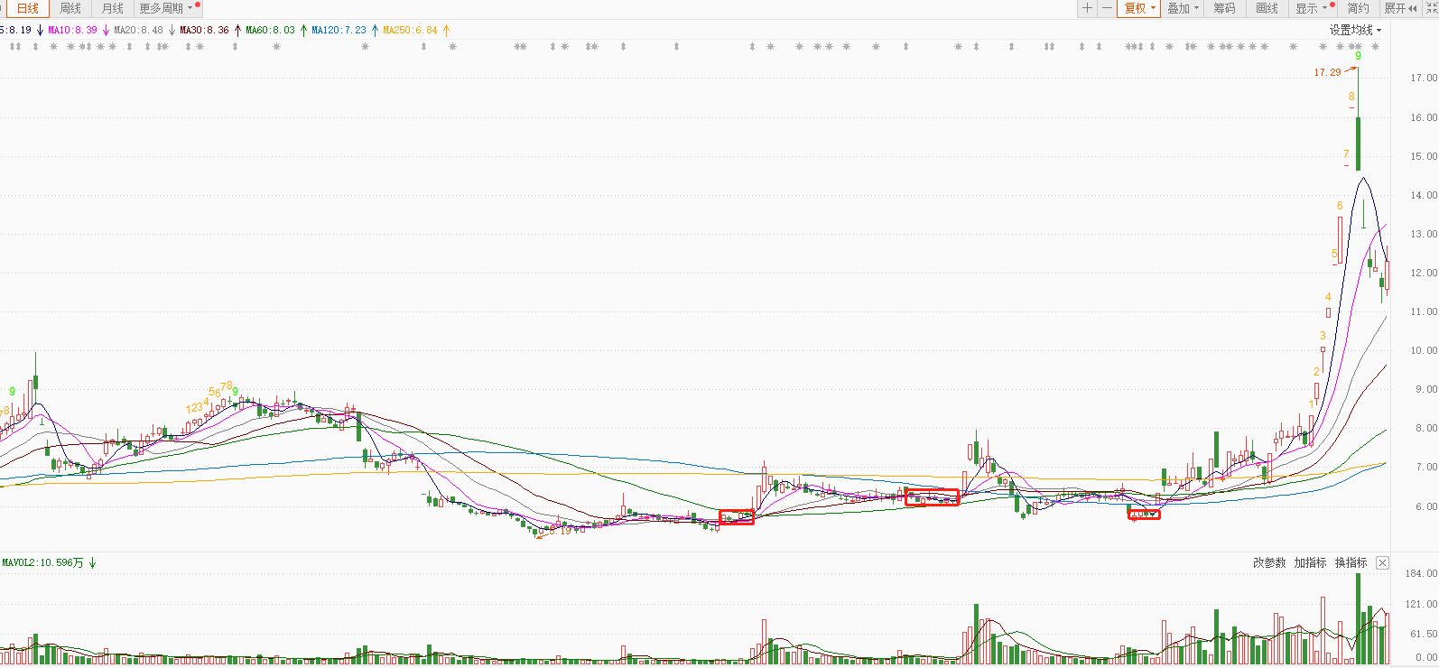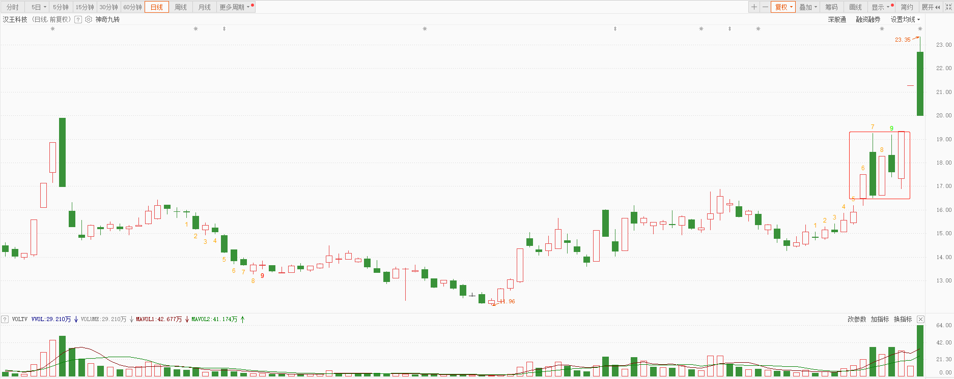 以江特电机为例,就出现了典型的曙光初现和旭日东升走势,这属于强烈的反转信号。