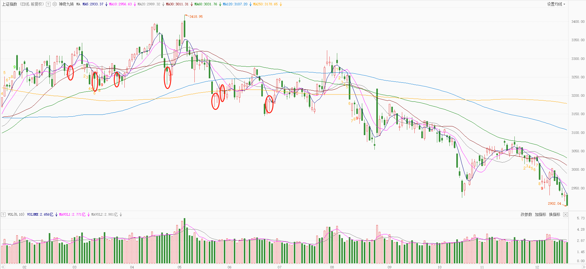 以下图为例,几轮大跌,都走出锤头线见底信号。