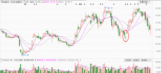 以民和股份为例,下图中的底部反转就是以启明星的形式完成的,只是第三根大阳线势头太强,收出了涨停。