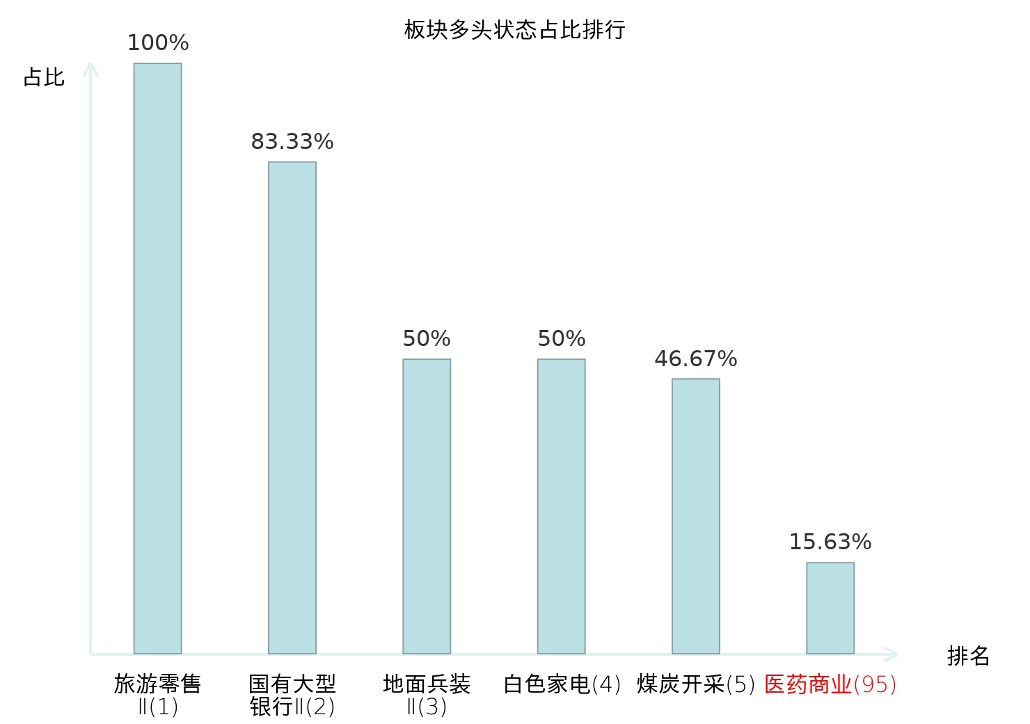 全市场所有行业板块中主力多头状态占比排名中,旅游零售Ⅱ板块位居第一。油服工程板块名次提升最快,较昨日上升107位。