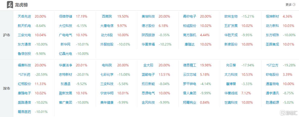 龙虎榜单日净买入额前三为美年健康、三安光电、通宇通讯,分别为5.79亿元、5.52亿元、3.46亿元。
