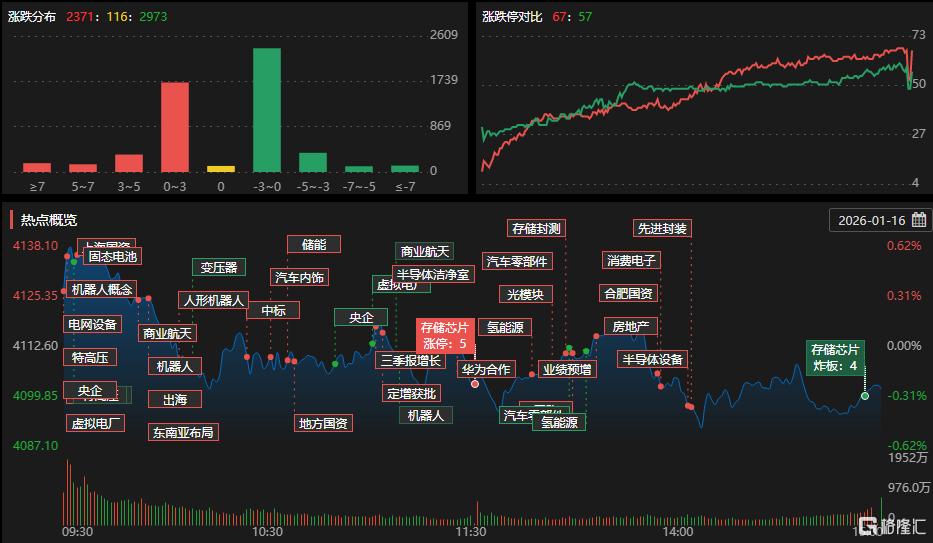 1月16日,A股震荡下行,全市场成交额3.06万亿元,较前一交易日增量1180亿元。