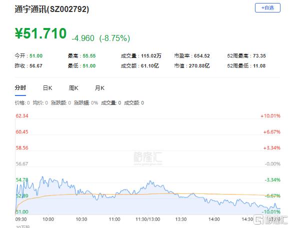 通宇通讯:下跌8.75%,全天换手率34.05%,成交额61.10亿元,振幅8.92%。龙虎榜数据显示,机构净买入2.11亿元,深股通净买入2.18亿元,营业部席位合计净卖出8215.95万元。