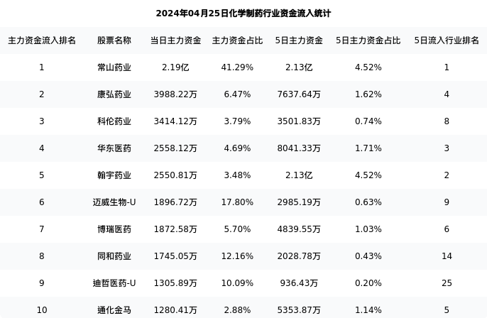从主力资金流向来看,化学制药行业今日主力资金流入54.92亿元,在所有申万二级行业中排名:37/131。