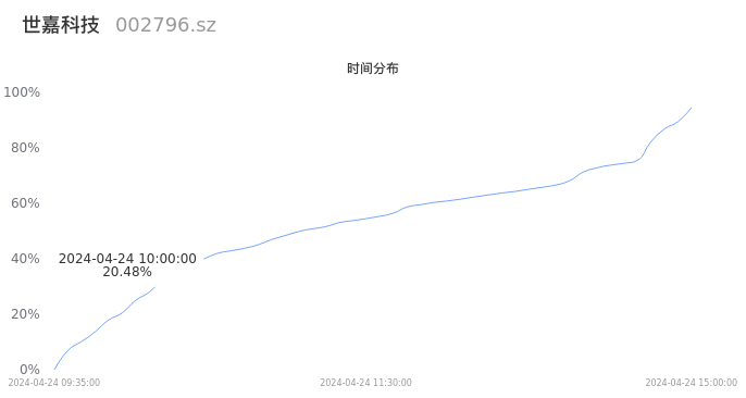 002796世嘉科技2024年04月24日成交16.30万手,成交金额1.39亿元,相较昨日放量3.30万手,换手率7.03%,成交清淡。