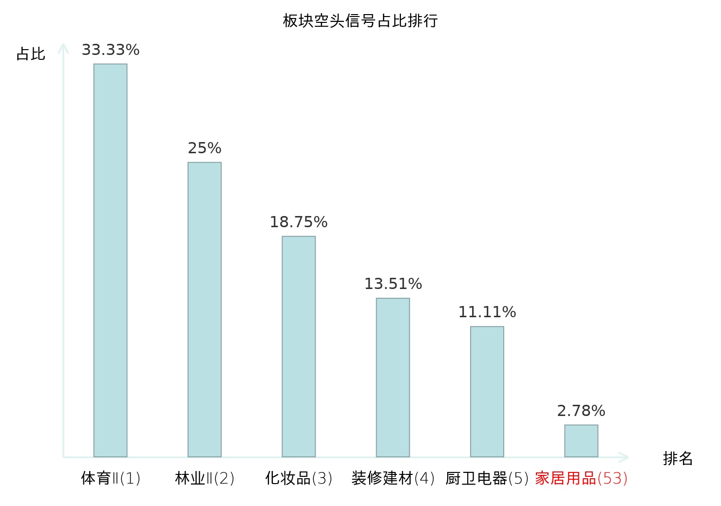 全市场所有行业板块中主力空头信号占比排名中,体育Ⅱ板块位居第一。装修装饰Ⅱ板块名次提升最快,较昨日上升107位。
