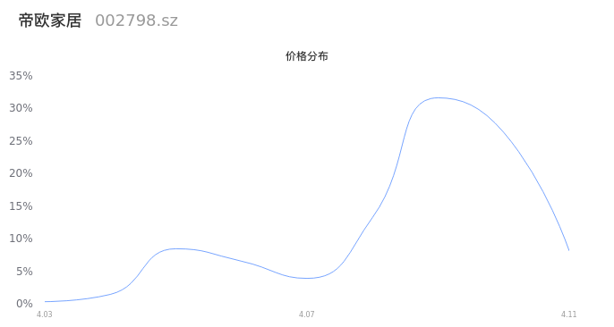 然后我们来看下当日成交的价格分布。经过分析发现,该股票当日成交价格波动低于10个最小波动价位,由于可以参考的样本量非常少,价格分布分析的结果不具有指导意义,下图仅供参考。
