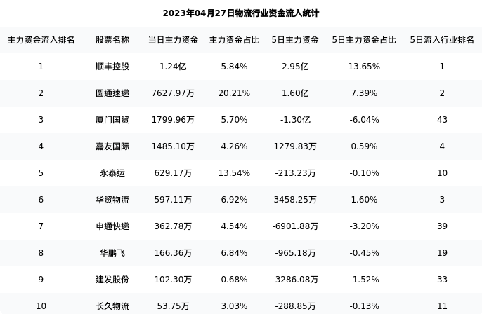 从主力资金流向来看,物流行业今日主力资金流入19.46亿元,在所有申万二级行业中排名:86/131。