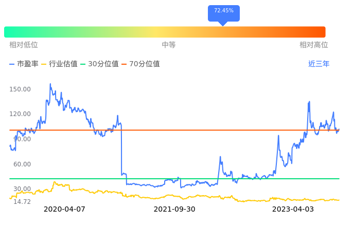 天顺股份当前市盈率PETTM为102.29,在所属的物流中,市盈率PETTM排36名。前5名分别为东航物流PETTM5.85、建发股份PETTM5.94、物产中大PETTM6.40、厦门国贸PETTM6.72、浙商中拓PETTM7.05。从PETTM估值走势数据来看,天顺股份当前市盈率PETTM为102.29,超过近3年72.45%的历史数据。