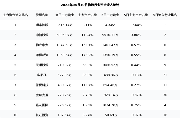 从主力资金流向来看,物流行业今日主力资金流入16.63亿元,在所有申万二级行业中排名:7/131。