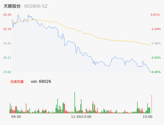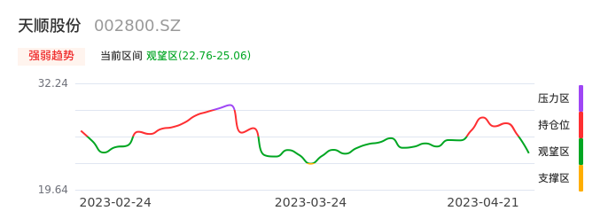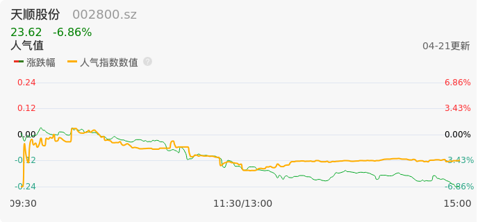 04月21日,天顺股份收报23.62,股价涨幅-6.86%,成交金额1.67亿元,换手率6.72%。