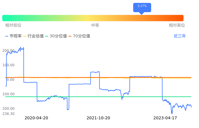 2023年04月17日,天顺股份上涨5.05%收于26.63,今日成交金额3.04亿元。下文将从市盈率PETTM、市净率PB、市现率3个角度去分析公司估值情况。