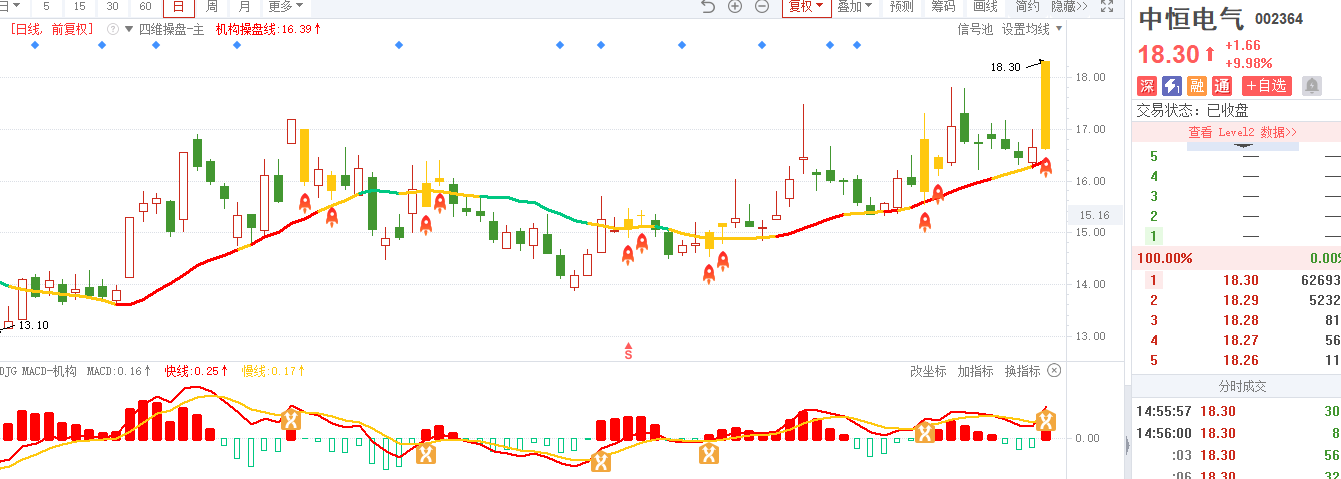 3)20250811-中恒电气-四维操盘-近期出现火箭信号且底部量柱由绿转红
