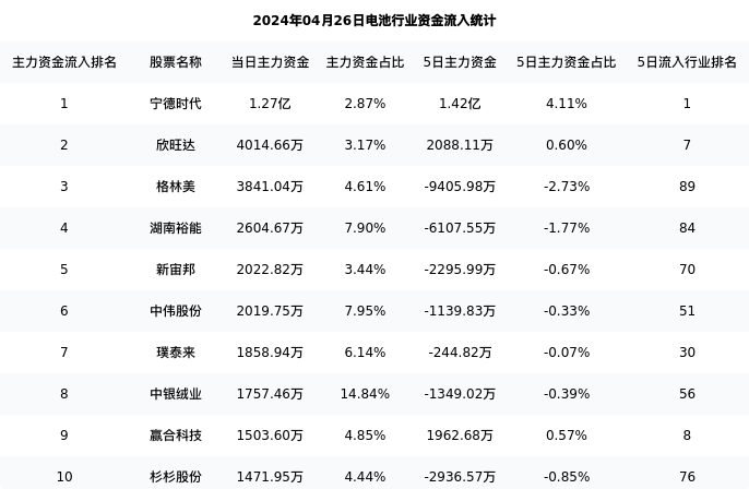 从主力资金流向来看,电池行业今日主力资金流入77.51亿元,在所有申万二级行业中排名:74/131。