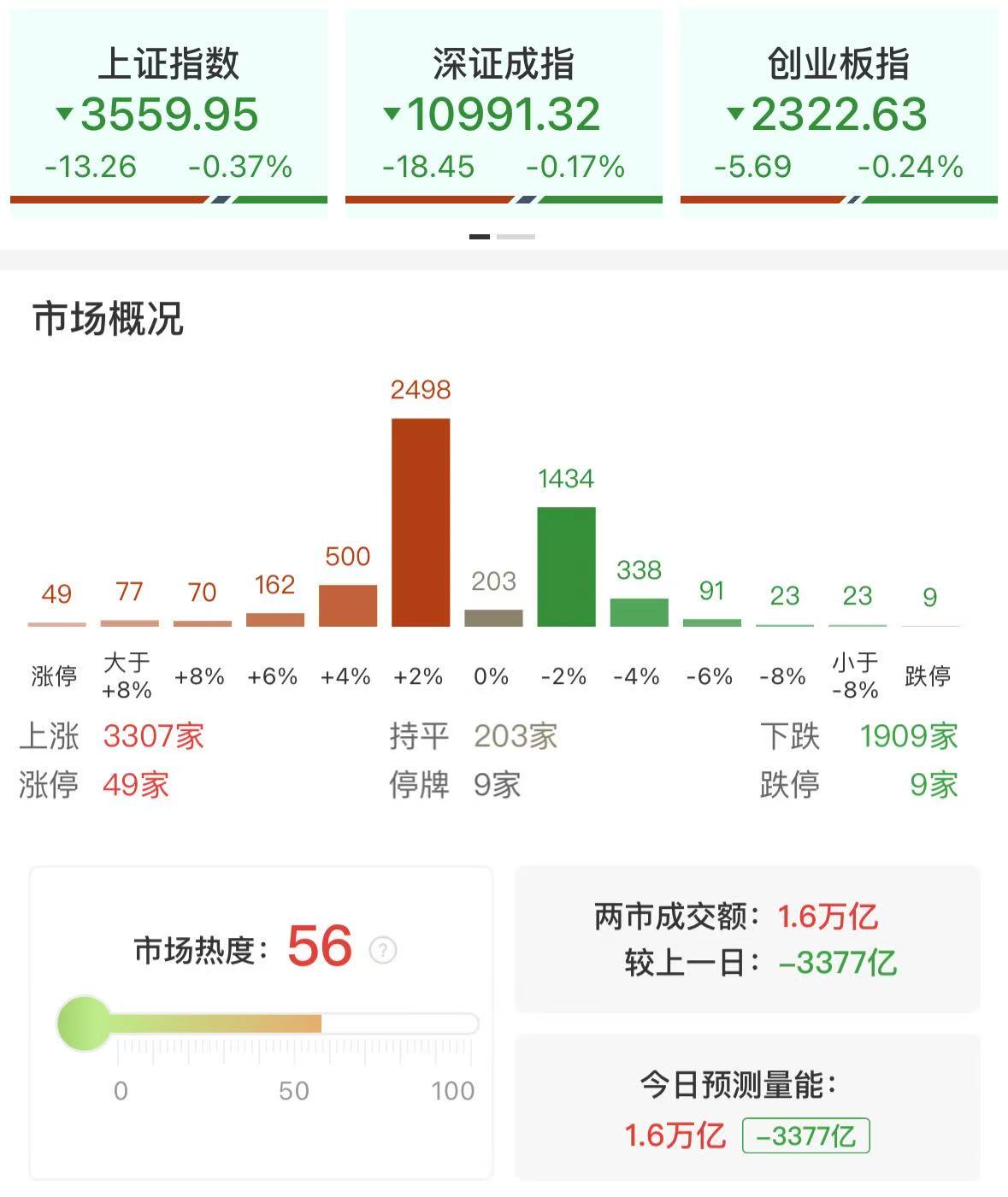 财联社8月1日讯,市场全天震荡调整,三大指数小幅收跌。沪深两市全天成交额1.60万亿,较上个交易日缩量3377亿。盘面上市场热点快速轮动,个股涨多跌少,全市场超3300家个股上涨。从板块来看,医药板块全线逆势走强,创新药概念延续强势,昂利康涨停;中药股展开补涨,维康药业涨停;光伏概念反弹,捷佳伟创涨停;午后AI应用端活跃,智能体方向领涨,鼎捷数智涨超10%;数据要素概念走强,深桑达A涨停。下跌方面,体育概念集体调整,共创草坪跌停。截至收盘,沪指跌0.37%,深成指跌0.17%,创业板指跌0.24%
