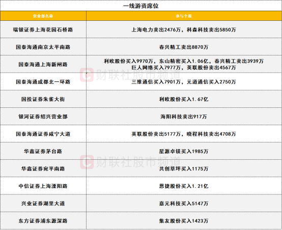 一线游资活跃度有所提升,利欧股份获两家一线游资席位合计买入超2.66亿;恩捷股份获一家一线游资席位合计买入超1.21亿;春兴精工遭两家一线游资席位合计卖出超1.2亿。