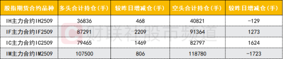 四大期指主力合约中,IF、IC合约多空双方均加仓,IF合约多头加仓数量较多,IC合约空头加仓数量较多。值得注意的是,IM合约多头加仓,空头大幅减仓。