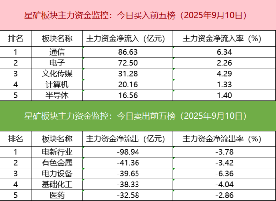 从主力板块资金监控数据来看,通信板块主力资金净流入居首。