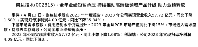 值得注意的是:2024年04月长城证券的侯宾/姚久花分析师,首次发布关于崇达技术的研究报告,标题为:崇达技术(002815):全年业绩短暂承压 持续推动高端板领域产品升级 助力业绩释放。
