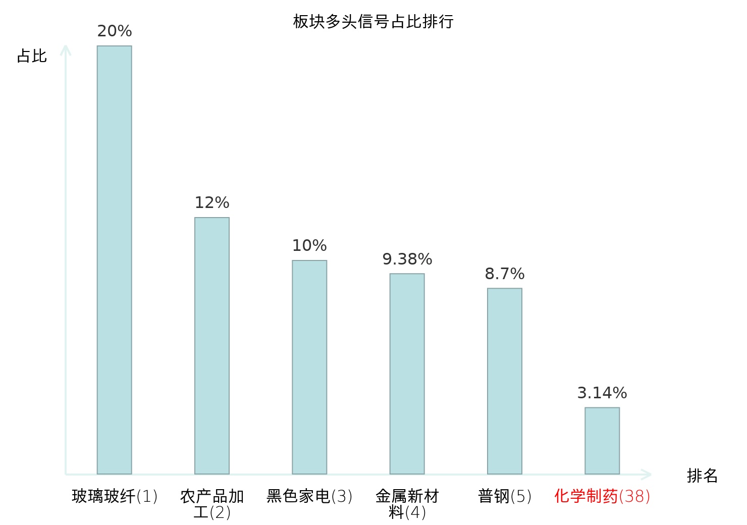 全市场所有行业板块中主力多头信号占比排名中,玻璃玻纤板块位居第一。玻璃玻纤板块名次提升最快,较昨日上升108位。