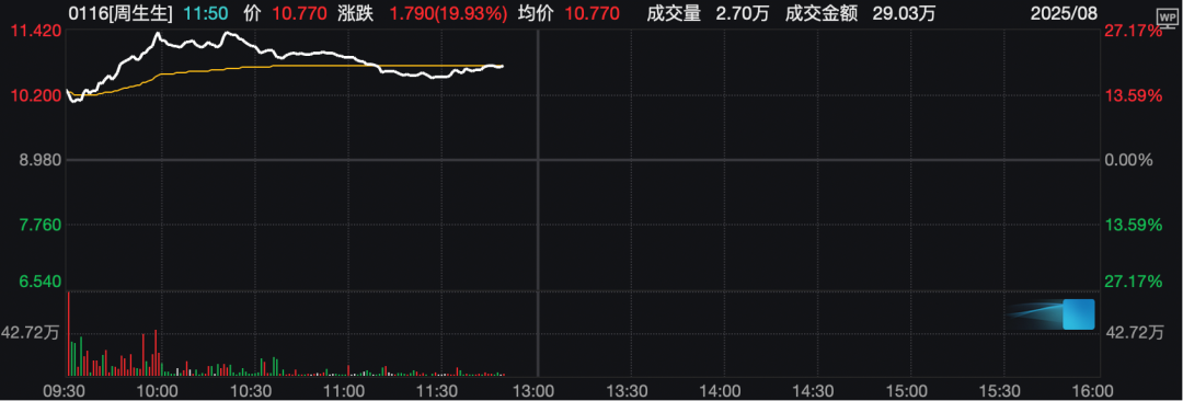 港股周生生股价盘中一度大涨逾27%