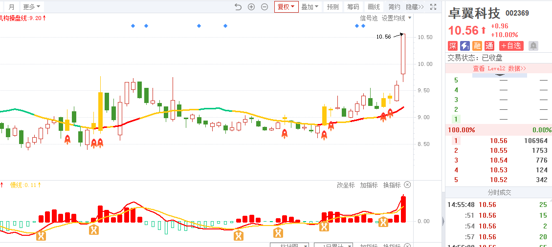 只可惜遇到了今天这种行情,尾盘翠微股份京北方都有漏单。漏单就说明有分歧,资金有点不认可。明天想要连板,就需要分歧转一致。