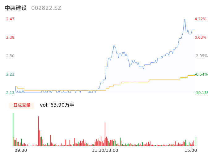 02月08日,中装建设收报2.40,股价涨幅1.27%,成交金额1.41亿元,换手率9.76%。